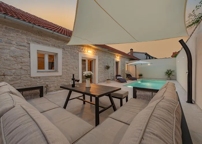 The 0-bedroom Villa Pod Murvom Zadarvillas Pridraga is located about 7 km from the Fortica Castle and boasts a swimming pool provided on a terrace for a pleasant stay.